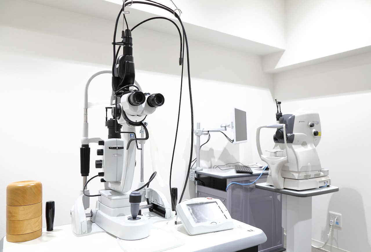 網膜光凝固すなわち、網膜を焼く機器です。糖尿病網膜症など、一部の症例では網膜の一部を焼く事により、視機能を温存する必要があります。また、網膜裂孔 ( 網膜に穴が開いた状態 ) に対し、網膜剥離を予防する為に使用する事もあります。