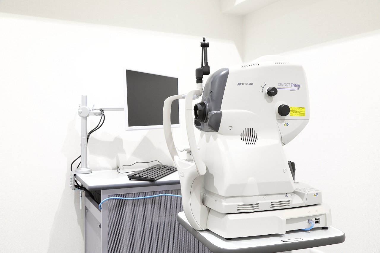網膜 ( 眼の底 ) の断面図を撮影し、異常の有無を調べます。また、視神経の異常の有無を検出する手段としても有用です。主に加齢黄斑変性症 ( 物を見る中心部の黄斑部に出血を起こす病気 ) の診断に有用です。