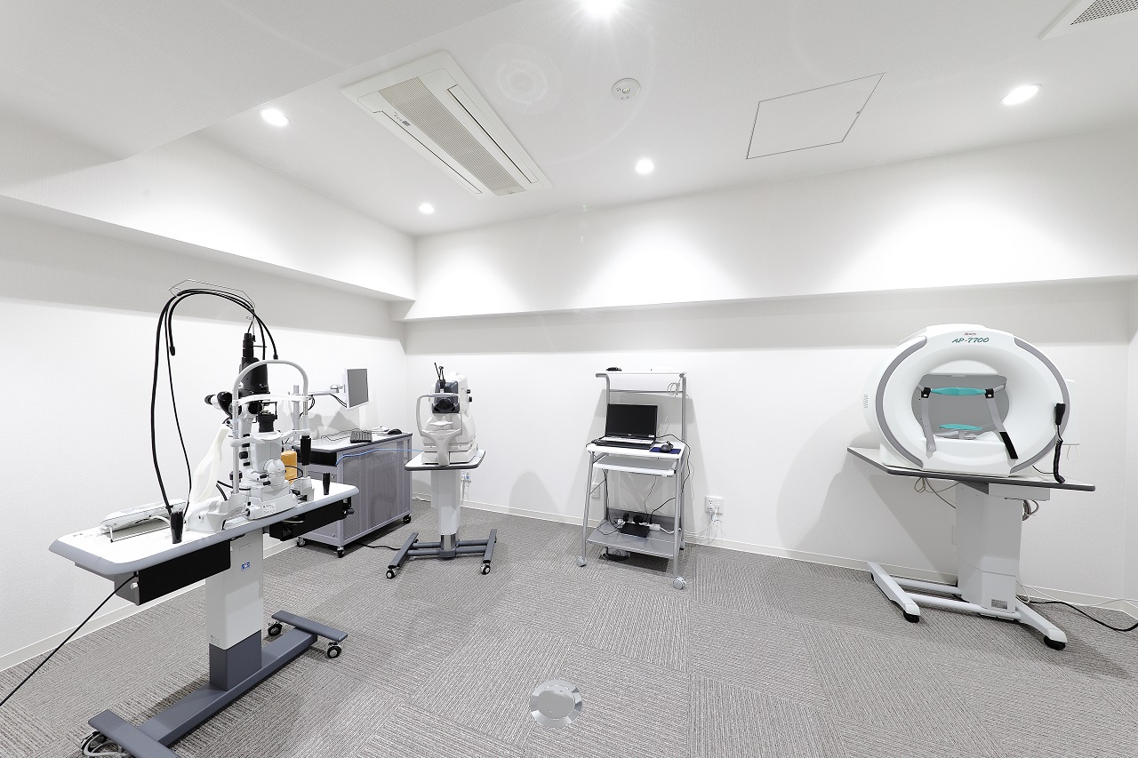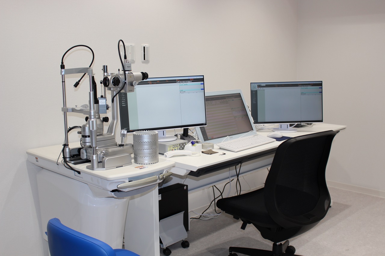 見える範囲を測定します。見えない場所がある場合、視神経疾患、網膜疾患を疑います。